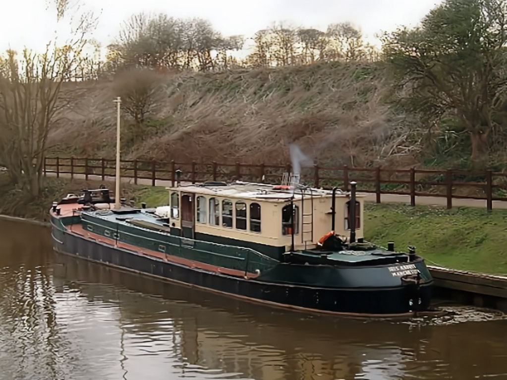 She primarily worked between the docks on the Mersey and Trafford Park, carrying grain to the Kellogg’s Factory via the Manchester Ship Canal and Bridgewater Canal, but also to destinations on the Weaver Navigation and River. She was capable of carrying 47 tons whilst also towing two flats (unpowered barges.)